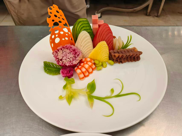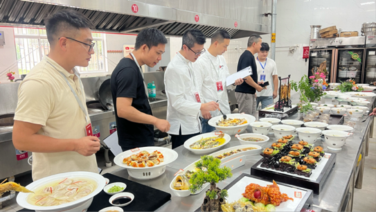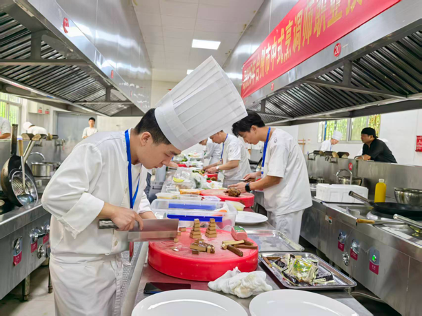 煙火氣里的匠心魅力技能操作環節堪稱“神仙打架”,選手們要在120分鐘內完成各種冷拼、規定地方名菜、特色食材創新菜三大挑戰,每一道工序都是對刀工、調味、火候與創意的極致考驗!比賽現場,選手們精神飽滿、技藝精湛:有人在冷拼環節刀工如飛,將蘿卜雕成栩栩如生的花鳥;有人在熱炒環節火力全開,顛鍋翻勺間香氣四溢;還有人在創新菜環節腦洞大開,讓平凡食材蛻變成視覺與味覺的雙重驚喜。評委團則從色澤、味感、成形、質感、衛生安全等多維度嚴格打分,每一道作品都要經過“火眼金睛”的挑剔檢驗,最終的優勝者,無疑是廚藝與匠心的雙重王者!