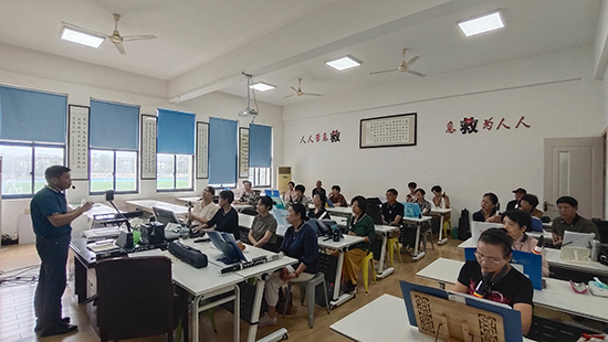 本次培訓特邀資深電吹管演奏者吳商擔任授課教師。課堂上,吳商結合老年學員的學習特點,以經典歌曲《秋風吹起》為教學核心,從節奏把控、氣息運用到情感表達,逐一進行細致講解與示范。學員們認真聆聽、反復練習,遇到疑問時主動提問,吳商也耐心答疑,手把手糾正演奏姿勢與技巧,課堂氛圍既專注又活躍。