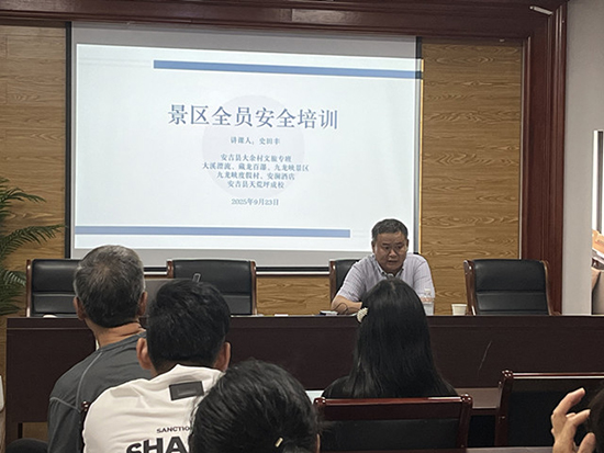 9月23日下午3時,在今年國慶“十一”黃金周到來前夕,由安吉縣大余村文旅專班和安吉縣社區(qū)教育學(xué)院天荒坪分院(天荒坪成校)聯(lián)合開展的藏龍百瀑等景區(qū)(酒店)員工全員安全培訓(xùn)在大溪村村委會三樓會議室舉行。