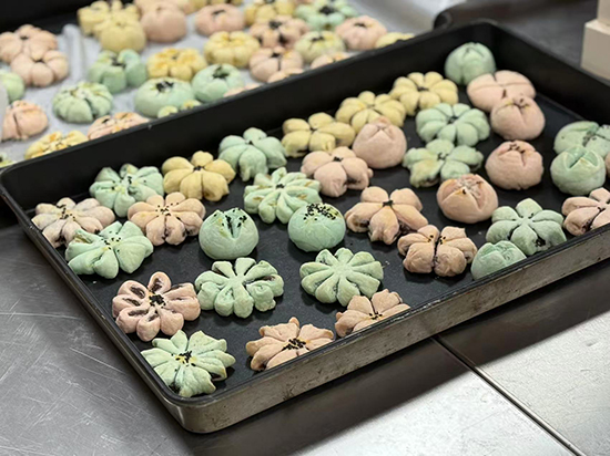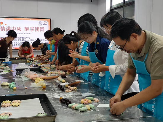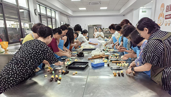 安全有保障,文化添溫情。安全宣講結(jié)束后,新碶街道社教中心百合分中心聯(lián)動新碶成校,共同舉辦桃花酥手工制作活動。活動現(xiàn)場,百合社區(qū)文化加油站志愿者們手把手指導(dǎo)職工、居民們?nèi)嗝妗W、塑形,大家在揉制酥皮、點綴花紋的過程中交流互動,既體驗了傳統(tǒng)手工的樂趣,又增進了鄰里與職工間的感情。面團的香氣與歡聲笑語交織,不僅營造了濃厚的節(jié)日氛圍,更以文化活動為紐帶,提升了轄區(qū)居民與職工的歸屬感和精神凝聚力。