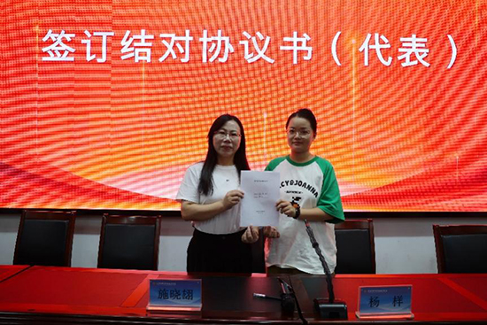 在全場師生的見證下,大會進(jìn)入核心環(huán)節(jié) —— 師徒結(jié)對協(xié)議書簽訂。施曉翃老師與楊樣老師作為師徒代表,鄭重走上臺,共同簽訂結(jié)對協(xié)議書。落筆的瞬間,不僅是一份承諾的達(dá)成,更是一份責(zé)任的傳遞。師傅們將以嚴(yán)謹(jǐn)?shù)膽B(tài)度、豐富的經(jīng)驗指導(dǎo)徒弟,徒弟們也將以飽滿的熱情、積極的態(tài)度虛心學(xué)習(xí),師徒攜手共同進(jìn)步的畫面,成為現(xiàn)場最溫馨的風(fēng)景。
