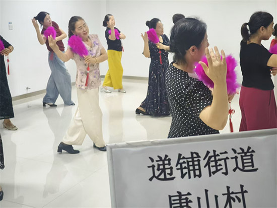 經(jīng)過兩個小時的學(xué)習(xí),學(xué)員們基本掌握了扇子舞的整套基礎(chǔ)動作。在活動的最后環(huán)節(jié),老師播放起《茉莉花》的音樂,帶領(lǐng)大家完整地跳了一遍扇子舞。伴隨著悠揚的音樂,學(xué)員們手持紅色扇子,翩翩起舞,扇面開合間,紅色的綢面在空中劃出優(yōu)美的弧線,雖然動作還略顯生澀,但每個人都精神飽滿,臉上洋溢著自信的笑容。?