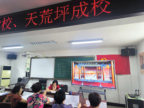 王惠芬老師利用高清投影設備,將曲譜唱詞、身段分解圖實時投映至幕布。學員可同步對照唱腔節(jié)奏與情感表達要點,尤其對“休怪文龍鐵石心腸”中復雜的情感轉折進行逐句拆解。這種可視化教學顯著提升了學習效率,一位銀發(fā)學員感慨:“以前學唱靠‘口耳相傳’,現在看屏幕就能掌握氣口和韻律,連眼神細節(jié)都一目了然。”
