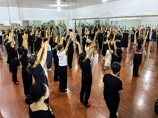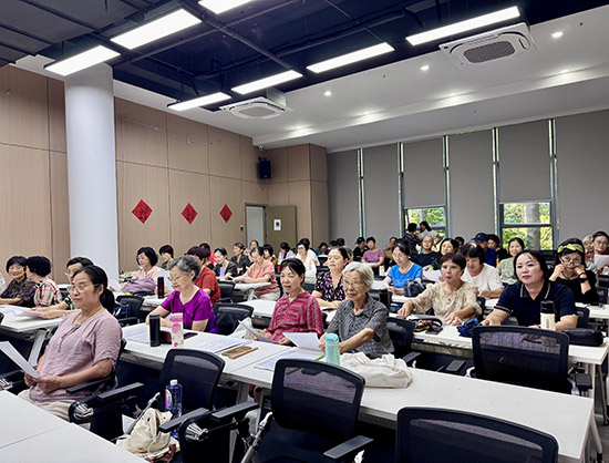 書法教室內(nèi),墨香彌漫,銀發(fā)學(xué)員們凝神靜氣,在老師的指導(dǎo)下從容運筆,一點一劃間盡顯漢字的韻致與人生的沉淀。形體舞班里,伴隨著舒緩優(yōu)美的音樂,學(xué)員們身姿舒展、步履輕盈,在節(jié)奏中找回身體的活力,展現(xiàn)出中老年人特有的優(yōu)雅與從容。而聲樂班精心排練的《浦沿潮涌》更成為了一道亮麗的風(fēng)景線,這首承載著浦沿精神與文化的歌曲,在銀發(fā)學(xué)員的歌聲中煥發(fā)出別樣生機。