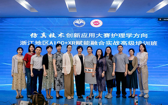 近日,仿真創新應用大賽護理學向浙江地區AIGC+XR賦能、融合實戰高級培訓在紹興護士學校順利召開,省內外十多家醫院護理專家、十余家高校護理骨干教師、一家公司代表積極參會。本次會議聚焦人工智能生成內容(AIGC)與擴展現實(XR)技術在護理教育、臨床培訓及科研創新中的前沿應用,旨在推動技術融合,提升護理人才培養質量與專業實踐水平。