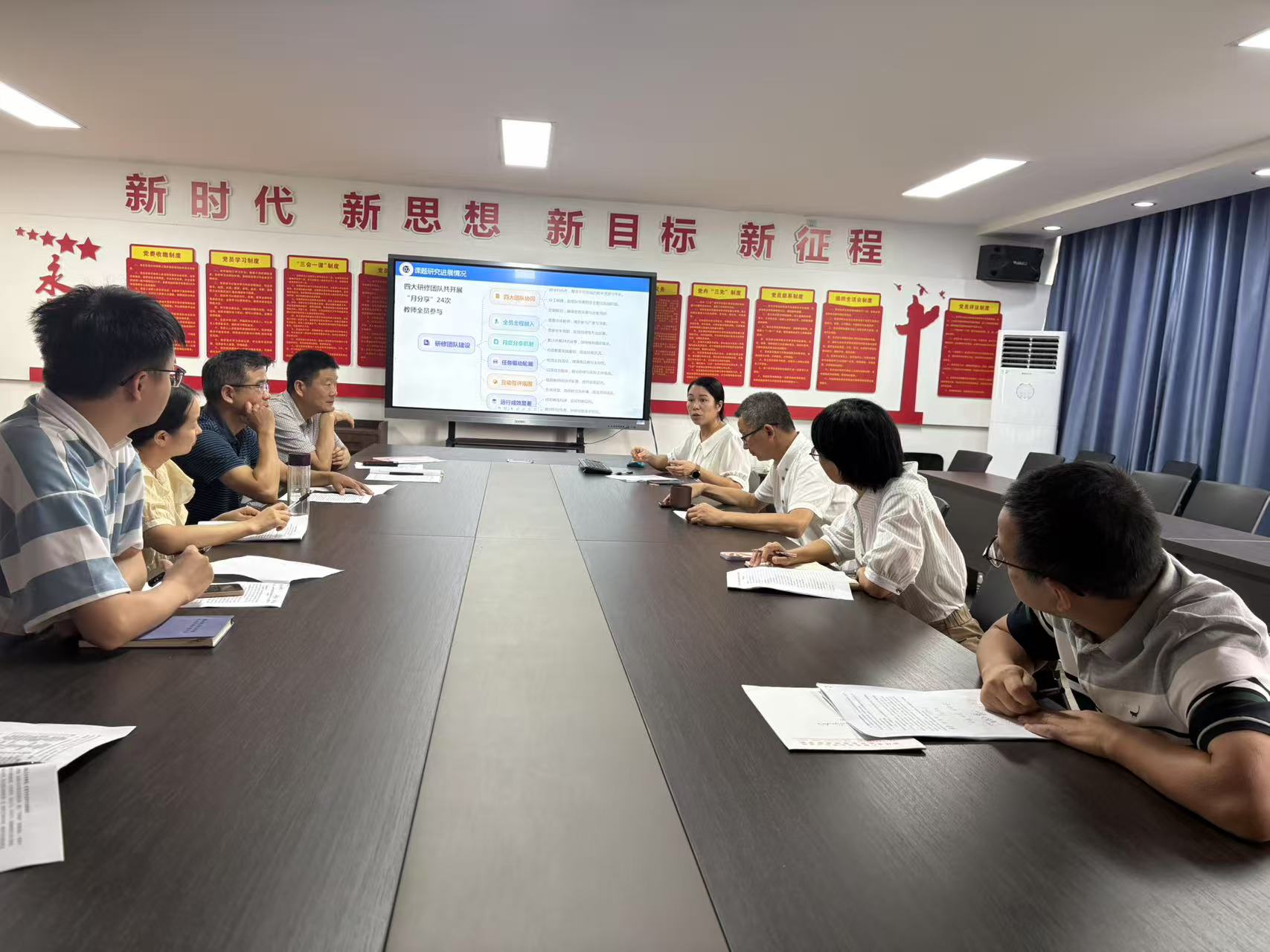 行至半山休道遠,中流擊水正當時。9月26日上午,長興開大教師進修學院在黨員活動室成功舉辦了以“復盤·優化·前行”為主題的2025年縣級課題中期匯報研討活動。課題組成員、科研處成員、分管領導及部分青年教師齊聚一堂,共同探討課題研究的階段性成果與后續研究計劃?;顒佑煽蒲刑幹魅瓮跬穹贾鞒?。