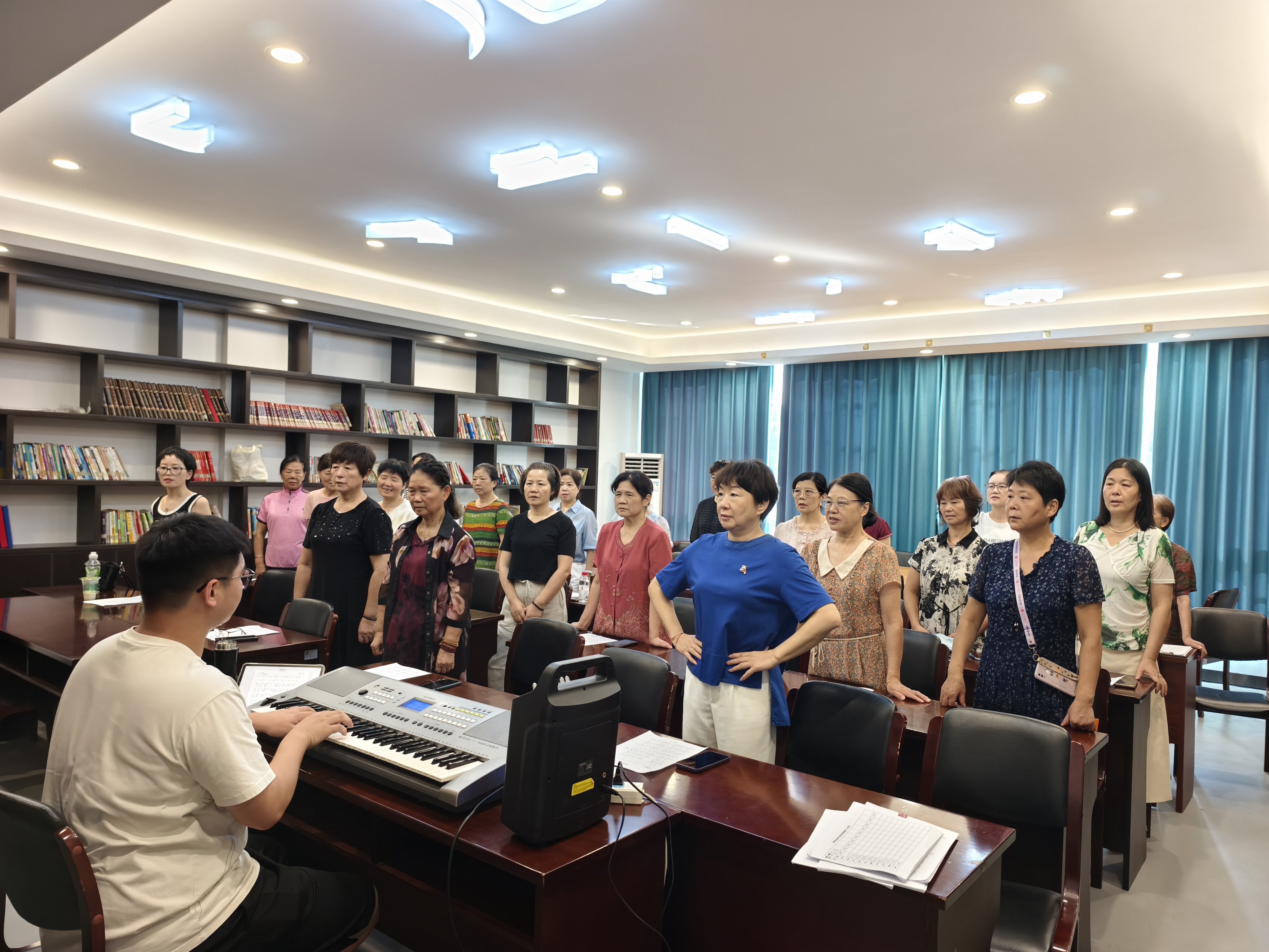 “大地回春,落櫻灑滿希望的步道……”還未走近聲樂班的教室,一陣陣激昂嘹亮的歌聲便已傳來。教室內,叔叔阿姨們手持歌譜,在聲樂小蔡老師的指導下,正全情投入地學唱本學期的重點曲目——《潮涌浦沿》。這首歌唱出了浦沿街道的發展變遷,里面的一段家鄉話朗誦“浦沿浪 浦沿浪,鯰魚嘴里撈白條。浦沿浪 浦沿浪,浦師傅手藝呱呱叫……”更是唱出了居民們對家鄉的深情與自豪。