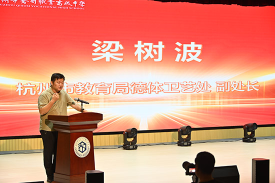 杭州市教育局德體衛(wèi)藝處副處長(zhǎng)梁樹(shù)波講話。他表示,本次活動(dòng)既是一個(gè)自我展示的平臺(tái),也是教師階段性工作心得和技能成長(zhǎng)的一種呈現(xiàn)。針對(duì)技能大賽課程展示活動(dòng),他提醒參賽的教師一是要注意對(duì)涉及到的學(xué)生信息的保密,對(duì)案例中的學(xué)生個(gè)人信息進(jìn)行適當(dāng)?shù)哪:幚恚袑?shí)保障學(xué)生隱私,二是要聚焦真實(shí)教育場(chǎng)景,從真實(shí)案例中提煉經(jīng)驗(yàn),杜絕形式主義,并清醒認(rèn)識(shí)教育行為的專(zhuān)業(yè)邊界,確保所有展示內(nèi)容都服務(wù)于教師專(zhuān)業(yè)能力提升的根本目的。