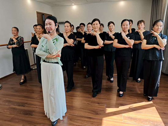 學員們的學習熱情,還離不開老師的用心教學。課堂上,張秋華老師會逐一帶學員調整站姿、糾正步態,遇到學得慢的學員,還會單獨示范指導,耐心講解旗袍走秀的韻味和細節。“老師教得特別細致,哪怕是手的擺放角度都講得清清楚楚,我們學得明白,越練越有勁兒!”學員們紛紛稱贊。