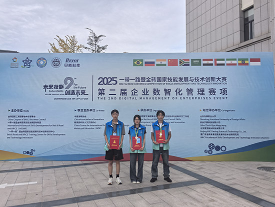 近日,2025一帶一路暨金磚國家技能發展與技術創新大賽“企業數智化管理”全國總決賽在山東外事職業學院隆重舉行。來自全國本科、高職、中職院校共100余支隊伍同臺競技,角逐該賽項最高榮譽。海鹽職業教育中心參賽隊虞思遠、俞懿、陶越中三位同學,在該校杜宇風、王佳軍兩位老師的指導下,憑借扎實的專業功底與出色的協作能力,斬獲中職組第二名,喜獲全國銀牌。