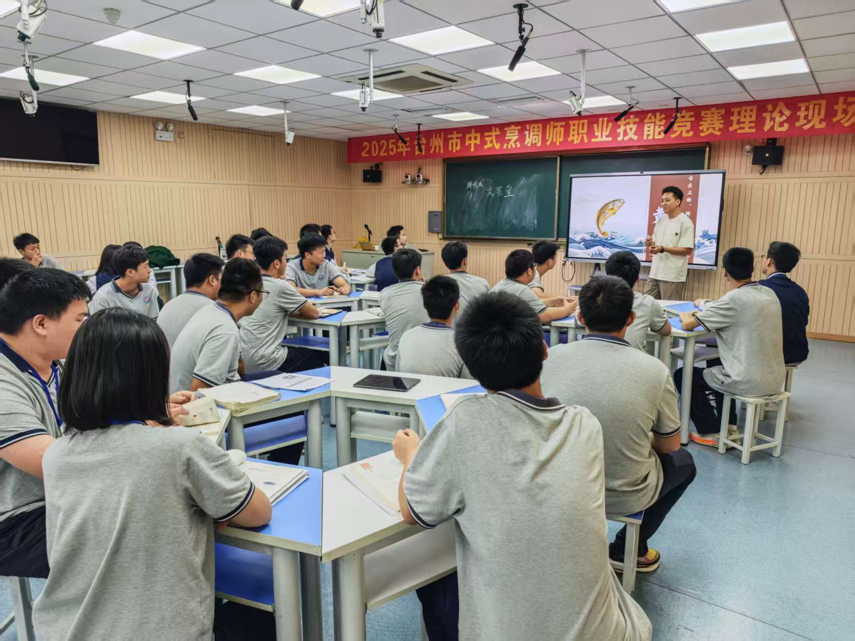 會后開展了課堂展示活動。袁甫園老師的《焯水》復習課以“以點帶面”模式,引導學生構建知識體系,充分彰顯烹飪專業高三復習高效學習模式。杜永衛老師的《舌尖上的“鮮噠噠”一大黃魚》設置美食推存官任務,通過闖關互動的模式,融入臺州地域食材文化,引導學生從學到講。嘉興教研組成員在聽課記錄中寫道:“課程既有理論精度,又有文化厚度,為我們提供了可借鑒的教學范式。”