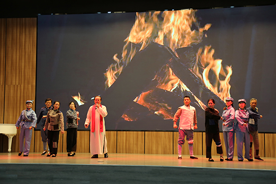 演出圍繞“山河記”“英雄豐碑”“傳承之路”三大篇章漸次展開。舞臺上的銀發(fā)表演者平均年齡65歲,卻以飽滿的熱情,將烽火歲月中的故事一幕幕重現(xiàn)。