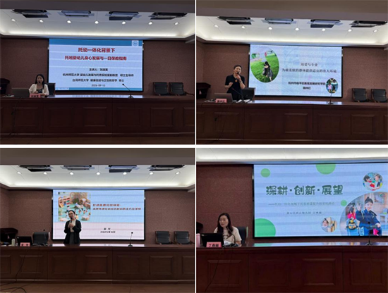 杭州市蕭山區西山幼兒園丁燕麗園長作《深耕?創新?展望:托幼一體化視域下托育質量提升的實踐路徑》專題講座。丁園長分析嬰幼兒發展的托育根本理念,并詳細介紹如何打造安全適宜的回應式空間,構建“輕柔”課程的生活實踐體,讓教師們明確提升托育質量的路徑。