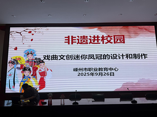9月26日上午,嵊州市職業教育中心“非遺進校園”系列活動迎來了一場妙趣橫生的文化盛宴。黃澤戲劇服裝制作技藝非遺傳承人、嵊州市工藝美術大師、“嵊州工匠”李松英女士蒞臨學校,以“針線間的華彩:戲曲服飾與文創迷你鳳冠的匠心之旅” 為主題,為師生們帶來了一場深入淺出、精彩紛呈的非遺文化分享。