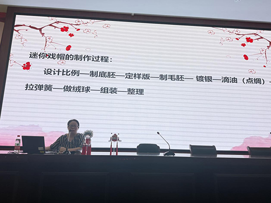講座的核心亮點,在于李大師對 “迷你鳳冠” 這一創新文創產品的深度分享。她向大家生動展示了如何將舞臺上那些龐大、華麗、屬于帝王將相和后宮佳麗的鳳冠,通過精巧的設計與精湛的技藝,微縮成一件件精美絕倫、可置于案頭欣賞的文創珍品。從最初設計靈感的汲取,到材料的精心挑選,再到鑲嵌等數十道復雜工序的簡化與創新,李大師娓娓道來。她不僅展示了成品之美,更生動詮釋了非遺技藝如何在堅守核心精髓的同時,通過創造性轉化和創新性發展,巧妙融入現代審美與生活,使其煥發出嶄新的生命力。