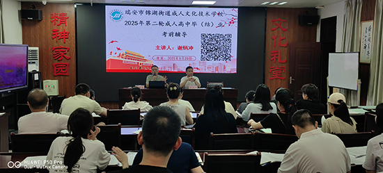 9月29日晚,瑞安市錦湖社區學校在文化大禮堂隆重舉辦2025級第二輪成人高中學歷提升培訓考前輔導活動,吸引了近60名來自各行各業的學員積極參與。瑞安市職業中等專業教育集團學校校長謝炳沖、教師代表等出席培訓,本次活動由錦湖社區學校常務副校長張再益主持。