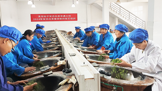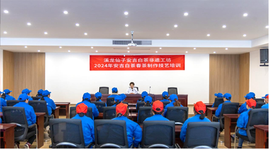 “一人富不是真的富,大家富才是真的富!”這是宋昌美時刻掛在嘴邊的一句話。2001年4月,宋昌美牽頭成立了溪龍鄉女子茶葉合作社,合作社由最初的8戶茶農,發展到40多戶,直至如今的200多戶女性茶農。合作社定期開展手工制茶比賽,傳承安吉白茶制作技藝,舉辦專業培訓,培養茶產業專業人員,截止目前,合作社已培養高級評茶員、茶藝師、茶葉加工工共502人。同時,合作社建立平臺,將生產技術攻關、新技術的應用以及新產品研發和技能人才培養等進行有機結合,通過課堂培訓、實地教學等方式示范推廣。為方便合作社成員學習,她投資興建的白茶服務中心綜合大樓中,專門開辟了可容納100余人學習的遠程教育播放室。截止目前,合作社已開辦茶園管理講座80余場,全鄉有50%的茶農,約2000人參與了安吉白茶種植學習。在她的帶動下,茶產業解決了本地和周邊鄉鎮3萬多人次的季節性就業問題。全鄉人均收入由6年前的1000多元上升到了1萬多元。