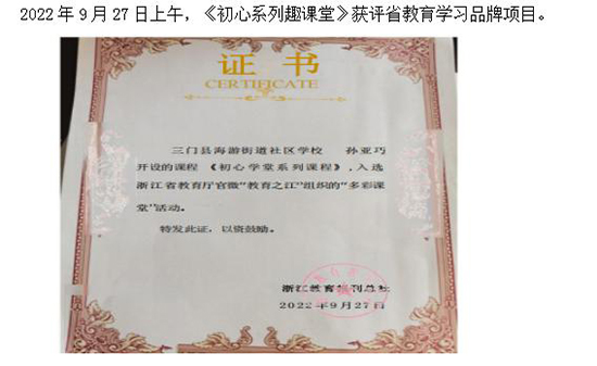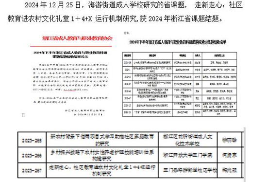 多年來(lái),以點(diǎn)帶面、點(diǎn)面結(jié)合,以《“初心接力”學(xué)習(xí)館》為學(xué)習(xí)體驗(yàn)基地,發(fā)揮海游街道社區(qū)學(xué)校的教育主陣地作用開展初心接力學(xué)習(xí),創(chuàng)建有標(biāo)識(shí)度、美譽(yù)度和知名度的初心接力學(xué)習(xí)教育品牌。自2017年開館以來(lái),學(xué)習(xí)不斷創(chuàng)新突破,品牌效應(yīng)日益凸顯,深受各單位居民的青睞,每年預(yù)約報(bào)名人數(shù)火爆,年學(xué)習(xí)超兩千人次,堅(jiān)持科研引擎,依托思政教育指導(dǎo)教學(xué)名師工作室,編印《“初心接力”學(xué)習(xí)課堂系列》和《“初心接力”學(xué)習(xí)通識(shí)讀本》等思政讀物,以及科普讀物,立項(xiàng)或結(jié)題6項(xiàng)各級(jí)各類課題和資源建設(shè)項(xiàng)目。“初心接力”學(xué)習(xí)實(shí)踐基地獲評(píng)臺(tái)州市初心接力學(xué)習(xí)教育實(shí)踐基地。成立臺(tái)州市初心接力學(xué)習(xí)教育指導(dǎo)教學(xué)工作室、臺(tái)州市初心接力學(xué)習(xí)教育研究重點(diǎn)實(shí)驗(yàn)室、臺(tái)州市初心接力學(xué)習(xí)教育聯(lián)盟等。其中具有代表性的如2024年浙江省課題結(jié)題.走新走心:社區(qū)教育進(jìn)農(nóng)村文化禮堂1+4+X 運(yùn)行機(jī)制研究、《初心系列趣課堂》獲評(píng)省教育培訓(xùn)品牌項(xiàng)目,成功打造了社區(qū)思政素質(zhì)教育新“范式”。
