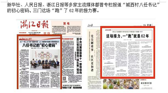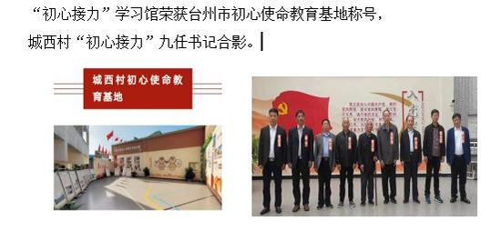 《“初心接力”學(xué)習(xí)館》積極參與全民終身學(xué)習(xí)體系的構(gòu)建,由海游街道社區(qū)學(xué)校牽頭,以《“初心接力”學(xué)習(xí)館》為載體,采取傳統(tǒng)文化的傳承與社會(huì)服務(wù)相結(jié)合的方式,服務(wù)全民終身學(xué)習(xí),到各個(gè)社區(qū)、文化禮堂、基層黨組織等進(jìn)行初心接力學(xué)習(xí),讓群眾參與初心接力學(xué)習(xí)體驗(yàn),傳承中華民族傳統(tǒng)文化和豐富居民精神生活、提升居民文化自信的雙重價(jià)值,也為建設(shè)祖國(guó)的美好未來(lái)貢獻(xiàn)力量,2024年《“初心接力”學(xué)習(xí)館》獲評(píng)臺(tái)州市全民終身學(xué)習(xí)品牌項(xiàng)目。學(xué)習(xí)館自成立以來(lái),社會(huì)影響力不斷擴(kuò)大,被各類各級(jí)媒體多次報(bào)道,廣播劇“九任書記一個(gè)夢(mèng)”陸續(xù)在中央廣播電視總臺(tái)中國(guó)之聲、浙江之聲、安徽廣播電視臺(tái)新聞綜合廣播、湖北之聲以及學(xué)習(xí)強(qiáng)國(guó)等平臺(tái)播出,“榜樣人物”紀(jì)錄片在浙江電視臺(tái)拍攝播出。2021年在中國(guó)共產(chǎn)黨的故事:習(xí)近平新時(shí)代特色社會(huì)主義在浙江的實(shí)踐專題宣介會(huì)上,城西村第九任書記章國(guó)進(jìn)向全球70余個(gè)國(guó)家、60多個(gè)政黨和政治組織、40多個(gè)智庫(kù)和友好組織的430多位代表講述城西村九任書記初心接力的故事。新華社、人民日?qǐng)?bào)、浙江日?qǐng)?bào)等多家主流媒體都曾專欄報(bào)道“城西村八任書記”的奮斗故事,其中人民日?qǐng)?bào)先后有四次報(bào)道,特別是在2021年7月1日致敬中國(guó)共產(chǎn)黨成立100周年長(zhǎng)篇通訊和2022年9月14日特約評(píng)論員文章中把城西村作為典型,分別寫道一個(gè)城西小村故事折射出百年大黨的拳拳之心、城西村小康之路折射出中國(guó)式現(xiàn)代化取得的輝煌成就。2019年,時(shí)任省委書記車俊同志在看到城西村事跡后作出批示:“這是一個(gè)基層黨建的好典型,應(yīng)注意總結(jié)、推廣、宣傳”。時(shí)任省委常委、組織部長(zhǎng)黃建發(fā)同志的批示是:“三門縣城西村八任書記事跡感人,可以進(jìn)一步挖掘,典型事跡可以在第二批主題教育中學(xué)習(xí)”。臺(tái)州市委陳奕君、李躍旗兩任書記也相繼做出了批示。2019年浙江省委“不忘初心、牢記使命”主題教育組織學(xué)習(xí)城西村八任書記一任接著一任干的先進(jìn)事跡。時(shí)任省委書記易煉紅,時(shí)任省委副書記、省長(zhǎng)袁家軍同志,現(xiàn)任省委常委、組織部長(zhǎng)王成等領(lǐng)導(dǎo)先后蒞臨考察初心館實(shí)踐基地,他們有的留詞、題字和講話及合影。他們的鼓勵(lì)給了我們力量和信心,也是給我們中華民族的傳統(tǒng)文化注入了自信與活力。 2021年10月23日,廣播劇《九任書記一個(gè)夢(mèng)》獲得第二十一屆中國(guó)廣播劇專家評(píng)析(連續(xù)劇)一等作品。