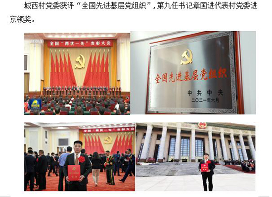 1957年,城西村黨支部建立,自章正合擔(dān)任首任書記以來(lái)62年,九任書記不忘初心,牢記使命,一任接著一任干,帶領(lǐng)村民,發(fā)展生產(chǎn),擺脫貪困,走向富裕,同奔小康。老黃牛書記章正合;改革先鋒書記金積貴;智多星書記章以齊;加減書記葉加法;自拆書記章宏將;三讓書記章宏軍;三改書記章平;拼命書記章以家;初心接力書記章國(guó)進(jìn)。