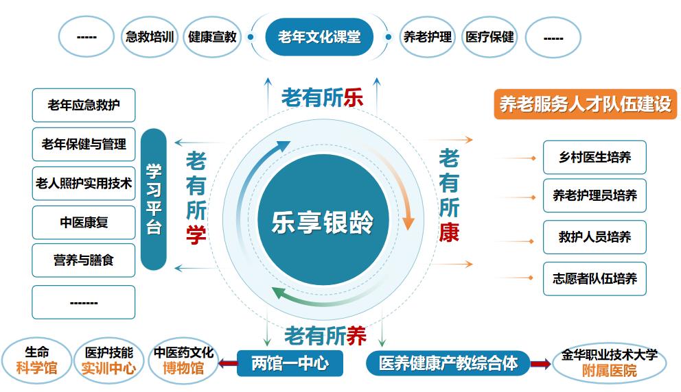 1.打造醫養健康產教綜合體。金華職業技術大學附屬醫院按照二級綜合性醫院標準建設,開放床位350床,為老年人的健康保駕護航。