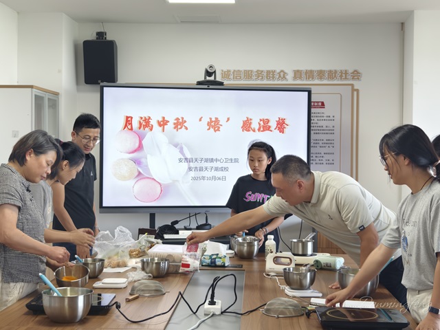 10月6日,中秋佳節(jié),安吉縣社區(qū)教育學(xué)院天子湖分院為天子湖鎮(zhèn)衛(wèi)生院醫(yī)護(hù)人員舉辦法式馬卡龍烘焙培訓(xùn),以甜蜜手藝傳遞節(jié)日祝福,近 20 名醫(yī)護(hù)人員在專業(yè)指導(dǎo)下體驗烘焙樂趣。?