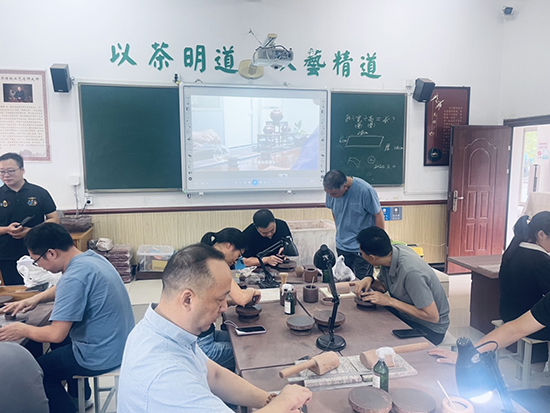 9月28日,培訓(xùn)進(jìn)入實(shí)地研學(xué)環(huán)節(jié)。上午,學(xué)員們走進(jìn)水口鄉(xiāng)成人文化技術(shù)學(xué)校,實(shí)地踏看“紫筍茶藝”“紫砂工藝”特色展示區(qū),直觀感受該校品牌建設(shè)成果。隨后,水口鄉(xiāng)成校趙珍校長(zhǎng)以《立足鄉(xiāng)域特色 打造成教品牌 助力地方發(fā)展——淺談紫筍茶文化體驗(yàn)品牌建設(shè)》為題作報(bào)告,分享該校依托地方特色培育成教品牌的實(shí)踐經(jīng)驗(yàn),讓學(xué)員深刻體會(huì)到“一校一品”建設(shè)的匠心與巧思。現(xiàn)場(chǎng),學(xué)員們還分組參與手捏紫砂杯、宋代點(diǎn)茶體驗(yàn)活動(dòng),在動(dòng)手實(shí)踐中感受傳統(tǒng)文化與職業(yè)教育融合的獨(dú)特魅力。