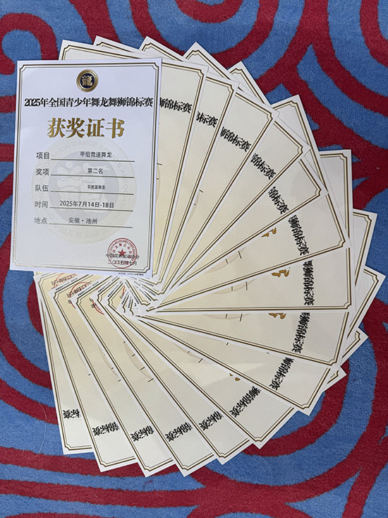比賽中,職教富春龍的隊(duì)員們齊心協(xié)力,將巨龍演繹得栩栩如生。他們的動(dòng)作行云流水,或穿騰、或翻滾、或游弋,把龍的霸氣威武展現(xiàn)得淋漓盡致。經(jīng)過激烈角逐,隊(duì)員們憑借出色的發(fā)揮,最終榮獲甲組舞龍團(tuán)體二等獎(jiǎng);獲競(jìng)速舞龍第二名;獲規(guī)定套路第三名;獲自選套路第四名。這不僅是對(duì)他們個(gè)人努力的肯定,更是對(duì)學(xué)校舞龍項(xiàng)目教學(xué)成果的一次檢驗(yàn)。