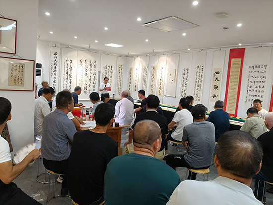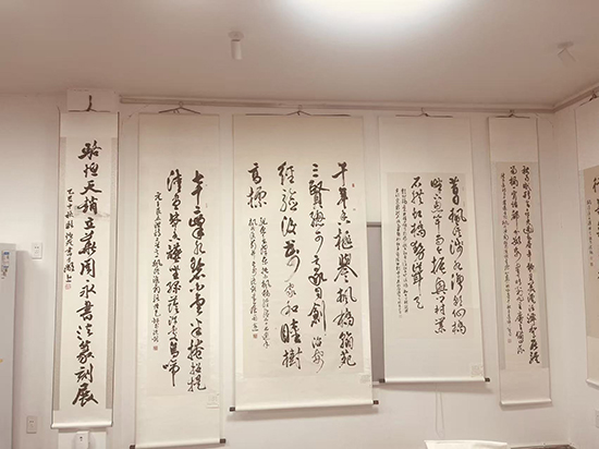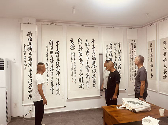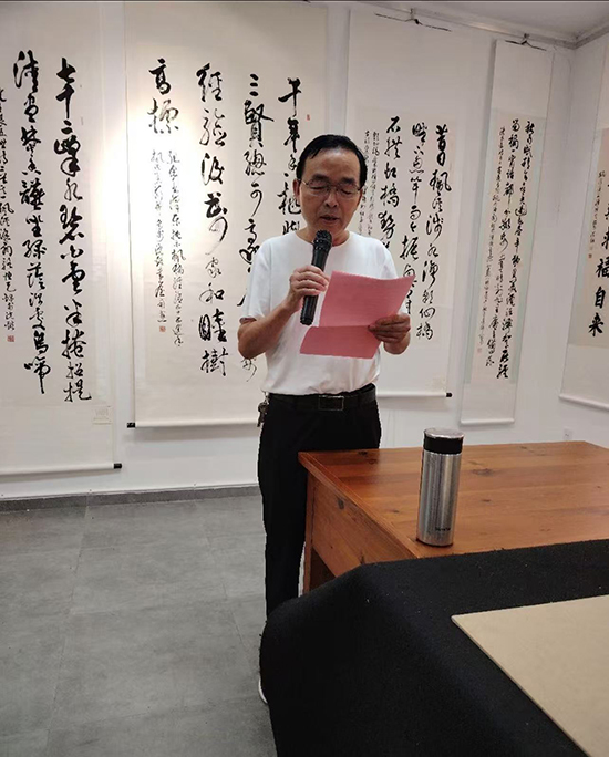 開幕式簡短而莊重,由楓江書畫社社長魏仁虎主持并致辭。他回顧了書畫社精心打造的“五一展、國慶展、年終迎春展”三大展事,著重強調“以展促創、以展促學”的核心理念,指出這一理念持續激發著社員的創作活力與熱情。魏仁虎表示,此次展覽既是楓江書畫社推動本土藝術傳承與創新的成果縮影,更離不開三位藝術家的踐行與引領,稱其為“內容豐富、異彩紛呈的藝術盛宴”。同時,他還對2026年迎春書畫展及五一聯展的籌備工作提出具體要求。開幕式后,駱恒天分享了個人創作感悟與對書藝的執著追求,三位藝術家更現場導覽展品、切磋交流,進一步提升了現場的藝術鑒賞氛圍。