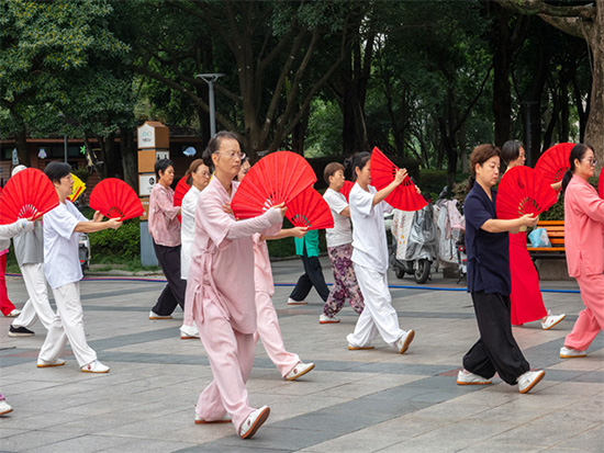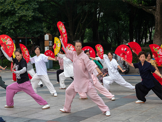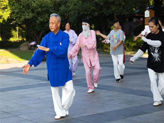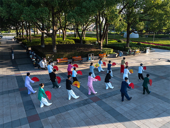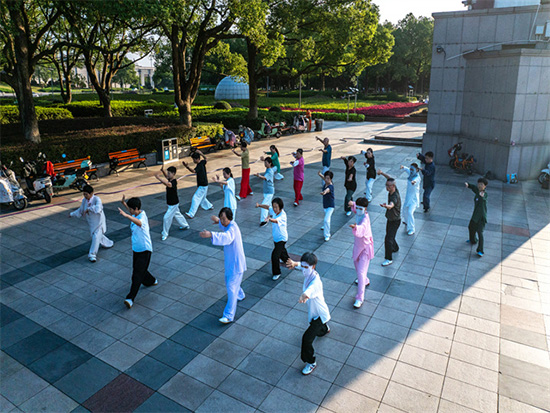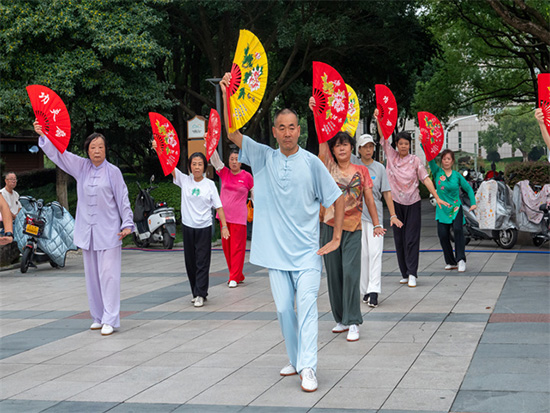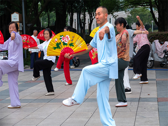 10月13日,陽光正好,微風不燥。安吉縣生態廣場上一派熱鬧景象,由安吉縣社區教育學院遞鋪分院組織的老年太極班日常訓練活動在此順利開展。來自安吉縣各個村鎮、社區的30多位老年學員齊聚一堂,以一招一式的太極動作,展現著銀齡群體的活力與風采,成為生態廣場上一道獨特且動人的風景線。?