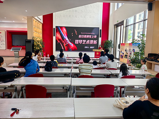 鑒賞課上,胡曉光老師與女兒并未從艱深的樂理切入,而是以一首耳熟能詳?shù)摹赌粮琛愤x段開場,瞬間拉近了居民與古典音樂的距離。琴弓在弦上優(yōu)雅滑動,如泣如訴的旋律將秋日的思緒娓娓道來,縈繞在活動現(xiàn)場的每一個角落。居民們凝神聆聽,沉醉于音樂編織的詩意世界。
