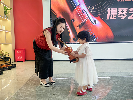 新碶街道社教中心梧桐分中心將持續(xù)推動服務模式從“被動響應”向“主動發(fā)掘”延伸,不僅關注居民的“急難愁盼”,更積極發(fā)掘社區(qū)中的“隱形”人才,鼓勵“居民服務居民”的鄰里互動。社區(qū)網(wǎng)格員在日常走訪中,留意到居住在社區(qū)內、具備精湛小提琴演奏技藝與深厚音樂素養(yǎng)的胡曉光老師。在社區(qū)的誠摯邀請下,胡老師欣然接受邀請,主動提供12臺小提琴作為公共教學設備,并親自為鄰居們授課。更令人欣喜的是,在古琴演奏方面也頗有造詣的胡老師女兒胡蘊子,也深受感染,表示下一步愿向社區(qū)居民傳授古琴技藝,助力傳統(tǒng)民樂傳承。胡老師一家正以實際行動,讓高雅藝術走入尋常百姓家。