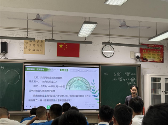 活動(dòng)伊始,溫州市龍灣區(qū)職業(yè)技術(shù)學(xué)校王建子老師帶來(lái)了一節(jié)題為《弧度制》的公開(kāi)課。王老師以“為何要為圓量身定制一把尺子”為切入點(diǎn),引導(dǎo)學(xué)生從生活實(shí)際出發(fā),思考角度制的局限,自然引入弧度制的概念。課堂上,她巧妙運(yùn)用幾何畫(huà)板實(shí)時(shí)演示弧長(zhǎng)與半徑的關(guān)系,幫助學(xué)生直觀理解“弧度”的本質(zhì);學(xué)生通過(guò)繩子與圓規(guī)動(dòng)手操作,親身體驗(yàn)“1弧度”角的形成過(guò)程,深化對(duì)“弧度是弧長(zhǎng)與半徑比值”這一核心概念的理解。