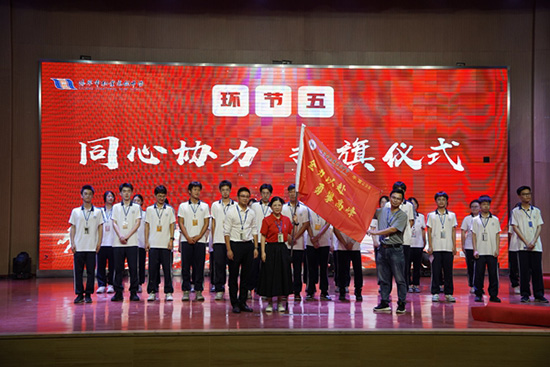 最令人振奮的當(dāng)屬授旗儀式。校長陸益飛老師與各專業(yè)部部長上臺,將高考戰(zhàn)旗逐一交到15位班主任手中。隨著“畫凌煙,上甘泉,自古功名屬少年”、“乾坤未定,皆是黑馬”等各班口號響徹會堂,學(xué)子們的高三使命感被徹底點燃,戰(zhàn)旗飄揚間,滿是“誓奪佳績”的壯志豪情。