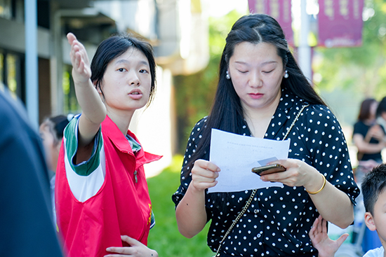 早上7時,伴著徐徐秋風,后勤準備組、校內引導組、安保組等8個新生接待工作組按時上崗,到處都是忙碌的身影。“你們好,車子請按指示牌右轉就可到達西區報到點。”在工作人員的指引下,家長車輛有序停放在學校專門設定的停車區域或校園外道路兩旁,暢通無阻,從入校的第一刻起,新生和家長們便感受到來自學校的溫暖與關懷。