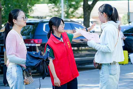 校園里清晰明朗的指示牌,寢室床鋪上整齊擺放的生活用品,無不透露出班主任與教職工們的辛勤與關懷。一遍遍耐心指引,一趟趟手提肩扛,從報到注冊到交通指引,從行李搬運到校園導覽,每一環節都力求盡善盡美。師生志愿者們雖額頭冒汗,嗓音漸顯疲憊,卻只是輕輕一抹汗水,匆匆潤喉,隨即以更加燦爛的笑容再次投入到緊張而有序的服務工作中。這些忙碌而充滿活力的身影,構成了校園中一道亮麗的風景線。