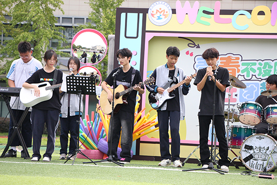 桂風拂校苑,荷韻繞亭臺,少年攜熱愛,社團筑夢來。