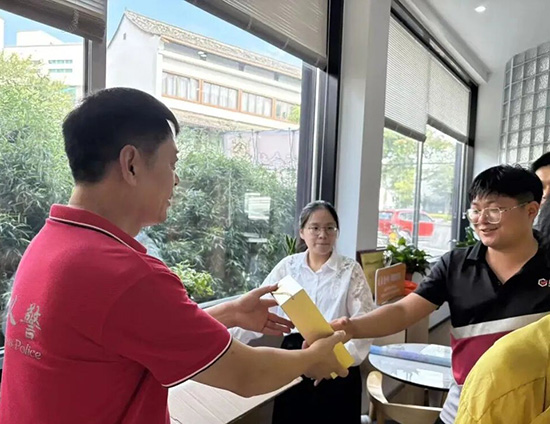 愛心禮包暖人心:小物件藏大關(guān)懷,情誼留心間。活動(dòng)接近尾聲,紅楓義警們捧著愛心禮包走向大家——里面裝著保溫杯、反光貼,還有印著交通安全標(biāo)語(yǔ)的小扇子。“天氣轉(zhuǎn)涼了,喝口熱水暖暖身子;晚上騎車,反光貼能讓別人早點(diǎn)看見你。”義警們的叮囑像秋日暖陽(yáng),熨帖又實(shí)在。“平時(shí)總見他們?cè)诼房谑鑼?dǎo)交通、在街邊幫人指路,今天一起玩、一起學(xué),才更懂‘義警’倆字的分量。”一位環(huán)衛(wèi)工人的話滿是感動(dòng);外賣小哥們也紛紛點(diǎn)贊:“感覺自己被惦記著,心里熱乎乎的。”