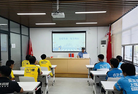 安全課“接地氣”:把守護(hù)說(shuō)進(jìn)勞動(dòng)者心里。“師傅們天天在路上跑,安全比啥都重要!”楓橋鎮(zhèn)交警中隊(duì)民警俞洋飛手持事故案例圖,為外賣員、環(huán)衛(wèi)工人帶來(lái)“關(guān)愛生命 安全出行”主題交通安全課。他不僅細(xì)致拆解騎行規(guī)范、路口觀察要點(diǎn),還手把手教大家突發(fā)情況避險(xiǎn)技巧,句句貼緊戶外勞動(dòng)者的日常。臺(tái)下,外賣小哥、環(huán)衛(wèi)工人聽得格外認(rèn)真。“我們天天在路邊巡邏,知道他們風(fēng)里來(lái)雨里去的不易。”俞洋飛的話道出牽掛;紅楓義警老陳更是感慨:“這課聽得實(shí)在!是真把我們的安全放在了心上。”