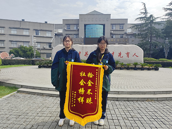 這份感動并未止步于電話。10月27日,失主女士專程來到海寧衛生學校,將一面書寫著“拾金不昧 品德高尚”的錦旗送到了兩位同學手中,當面向她們表達了誠摯的謝意。她說:“從這兩個孩子身上,我看到了海寧衛校學生優秀的品質和良好的教養,你們學校的育人成果,值得肯定!”
