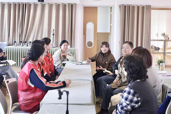 隨后,孫俟萁帶領幼兒園一線教師與學校黨員教師、學生代表展開深入研討。雙方結合本次音樂活動的實踐效果,從“幼兒理解能力適配性”“作品與幼兒園主題課程的結合方式”“不同年齡段幼兒的教學方法調整” 等方面展開熱烈討論,明晰了《綠青山小調組歌》在幼兒園的使用和推廣方向,讓優質教學資源真正服務于幼兒成長。