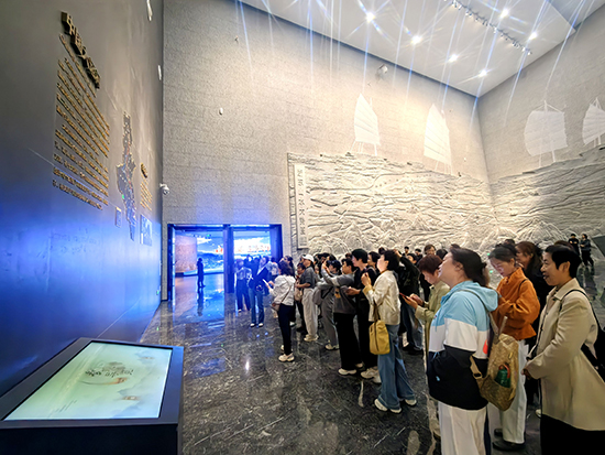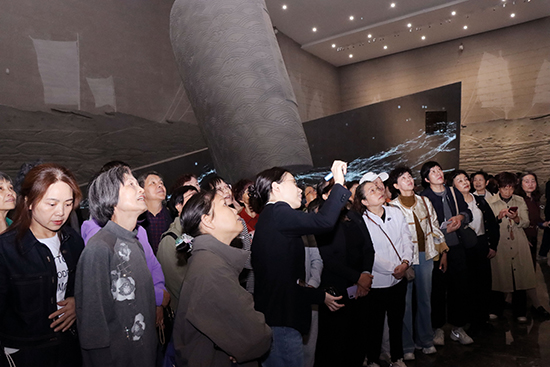 浙東運(yùn)河博物館內(nèi),老年學(xué)員們?cè)谥v解員的帶領(lǐng)下,沿“運(yùn)河緣起—水運(yùn)興盛—文化交融” 的展陳脈絡(luò)緩步前行。講解間隙,老年學(xué)員們不時(shí)提問交流,探討運(yùn)河對(duì)浙東地區(qū)民俗、商貿(mào)、城市發(fā)展的深遠(yuǎn)影響。在四十分鐘的研學(xué)時(shí)光里,追溯運(yùn)河歷史脈絡(luò),從千年水運(yùn)文化中感悟時(shí)光沉淀的生命力量。
