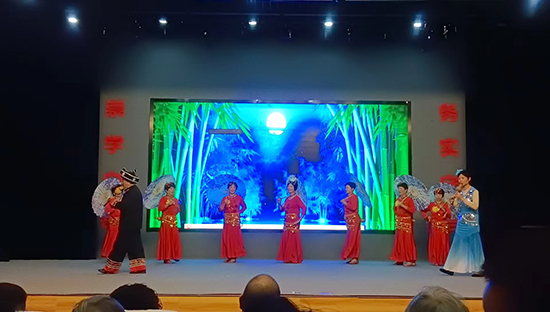 晚會以融合傳統與現代的文藝演出為核心,天荒坪成校老年學員成為亮點。葫蘆絲班學員身著統一服飾,演繹《月光下的鳳尾竹》等經典曲目,婉轉音韻承載著對傳統文化的堅守;歌詠班則獻上歌舞《紅梅贊》,以鏗鏘舞步與激昂歌聲詮釋革命精神,舞臺光影間勾勒出“銀齡風采”的生動畫卷。此類社區文藝實踐,呼應了全國重陽活動中“傳統文化與現代元素創新融合”的節日理念,使尊老敬老內涵更具感染力。