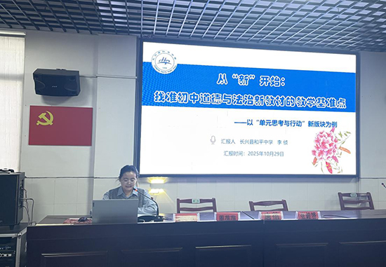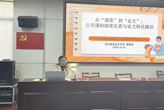 呂山中學(xué)周萍萍老師以《從“課堂”到“論文”:公開課的深度反思與論文轉(zhuǎn)化的路徑》為主題,從教師專業(yè)成長、教學(xué)實踐優(yōu)化、教研價值輻射三重維度,論證公開課轉(zhuǎn)化為論文的可行性。周老師為參訓(xùn)教師凝練出“立體定論—回溯整理—建構(gòu)謀篇—打磨潤色”四步公開課轉(zhuǎn)化論文的方法論,為教師實現(xiàn)教學(xué)研一體化提供范式參考。和平中學(xué)李偵老師以《從“新”開始:找準(zhǔn)初中道德與法治新教材解讀的教學(xué)基準(zhǔn)點》作專題發(fā)言,從“明確板塊構(gòu)成和創(chuàng)新本質(zhì)解碼”到“凸顯核心功能與板塊價值錨定”雙維度,指導(dǎo)參訓(xùn)教師把握初中《道德與法治》新教材迭代邏輯。