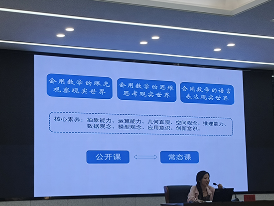 培訓期間,浙江省教育廳教研室初中數學教研員李惟峰作主題為《數學教育的新坐標——從知識傳授到創新思維》的專題講座,李老師從創新思維培養的背景、創新思維培養的關鍵、創新思維培養的建議三個維度深刻闡述了創新思維培養的重要性、內容和路徑,為參訓教師從“知識傳授”走向“素養教學”的轉變提供了理念上的更新和實踐上的引領。寧波市教育局教研室初中數學教研員楊一麗作主題為《理解課標 解構教材 賦能教學》的專題講座,講座從課標主要的突破、教材修訂的主要方面、教學的思考等方面展開,同時結合課例分析讓參訓教師對課堂上如何讓學生的思維得到生長與升華有了直觀的感知,為研題提供方向和框架。湖州市教育科學研究中心初中數學教研員沈瑩琪作主題為《讓孩子學會學習:新課標下初中數學深度教學的設計與思考》的專題講座,沈老師通過幾個案例的分析讓參訓教師明白如何實現評價與教學的一致性并在教學中怎樣實現高路遷移和深度教學,同時還強調數學教師一定要學會學習,要努力把我們的數學課上得更深一點、更有味道點,讓孩子們學起來更輕松更愉快。