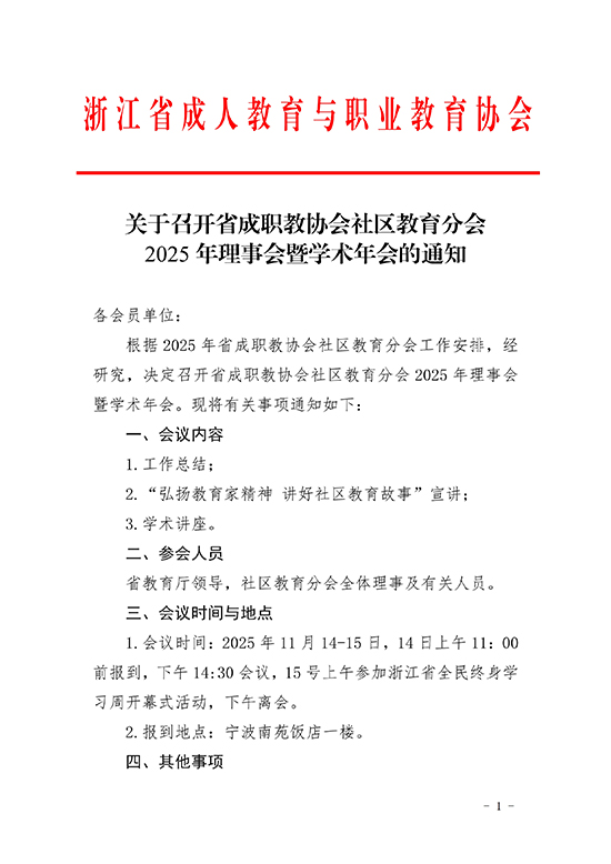 關(guān)于召開省成職教協(xié)會(huì)社區(qū)教育分會(huì)2025年理事會(huì)暨學(xué)術(shù)年會(huì)的通知