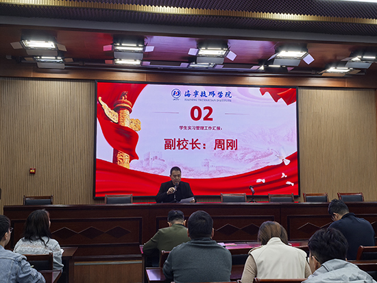 隨后,副校長周剛就學生實習管理工作作專題匯報。他詳細介紹了當前各專業學生實習的整體安排、進展情況及初步成效,深入分析了實習過程中存在的重點和難點問題,并提出有針對性的改進措施與優化方案。周剛指出,實習是技術技能人才培養的關鍵環節,是檢驗教學成果、銜接社會需求的重要橋梁。必須進一步強化過程管理,完善校企協同機制,加強對學生的安全教育、心理關懷和職業指導,確保實習工作安全、有序、高效開展,切實提升學生的實踐能力與綜合素養。