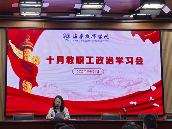 為持續深化理論武裝,凝聚奮進力量,統籌推進教育教學與人才培養等各項中心工作,海寧技師學院于2025年10月31日召開全體教職工政治學習會。會議聚焦政治理論學習、學生實習管理、教師專業發展等核心議題,旨在統一思想、明確方向,為學校下一階段的高質量發展注入強勁動力。會議由副校長王立群主持。