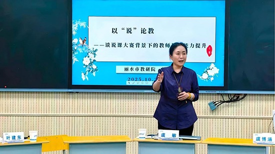 麗水市教研院中職特色專業(yè)教研員虞敏老師以《以“說”論教—談?wù)f課大賽背景下的教師教學(xué)設(shè)計能力提升》為題開設(shè)專題講座。她指出,說課和上課都是教師淬煉教學(xué)理念、教學(xué)能力、教學(xué)實踐等綜合素養(yǎng)的“實戰(zhàn)場”。