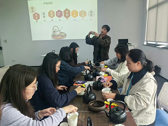 活動現場,專業茶藝師以生動詳實的講解,從茶葉的起源、種類辨別,到茶具的選擇、沖泡技巧,再到品茶的禮儀與心境,將深厚的茶文化知識娓娓道來。職工們聽得聚精會神,不時拿出手機記錄要點,還積極與茶藝師互動提問,現場氛圍輕松而熱烈。在實踐操作環節,大家親手拿起茶具,按照茶藝師的指導溫杯、置茶、注水、出湯,看著茶葉在水中舒展,聞著四溢的茶香,感受著茶湯入口的醇厚回甘,臉上逐漸露出放松的笑容。